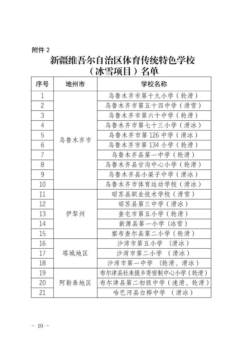 附件:1. 新疆维吾尔自治区体育传统特色学校(冰雪项目)名单