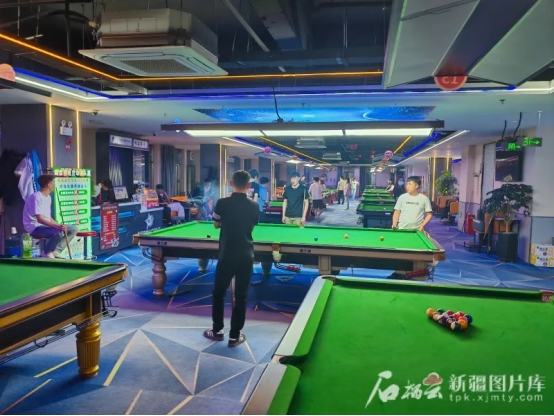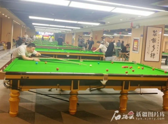 乌鲁木齐市星牌云玖台球俱乐部人气十足。石榴云/新疆日报记者 黄兴 摄