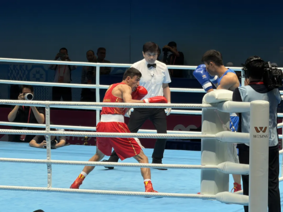 比赛中,伊卜拉伊木·马木提展现出扎实的技术功底与顽强的拼搏精神。面对实力强劲的东道主选手朱健豪,他始终保持清晰战术思路,攻防转换果断,多次凭借精准出拳制造有效进攻。尽管最终未能逆转战局,但他在赛场上展现出的坚韧意志与竞技风采,赢得了现场观众的阵阵掌声。