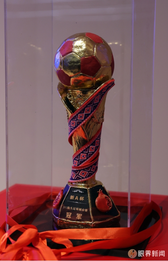 12月24日,“新A杯”3V3街头足球城市赛发布会在乌鲁木齐文化中心举行,冠军奖杯亮相。记者 王畅彤 摄