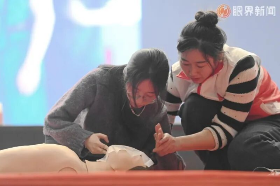 1月26日,在新疆医科大学(雪莲山校区),参加2026年“奔跑吧·少年”全国青少年冬季阳光体育大会志愿服务的志愿者们,正在参加心肺复苏、应急救护等医疗知识培训。记者 陈岩 摄