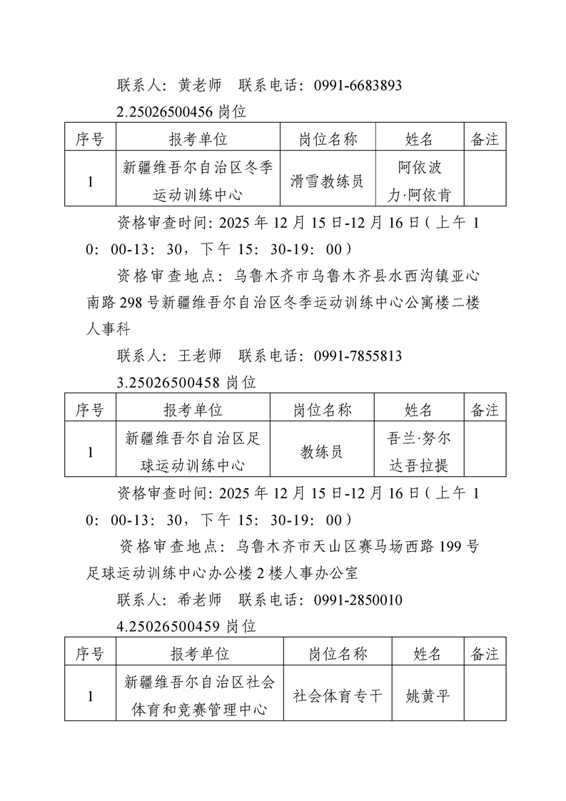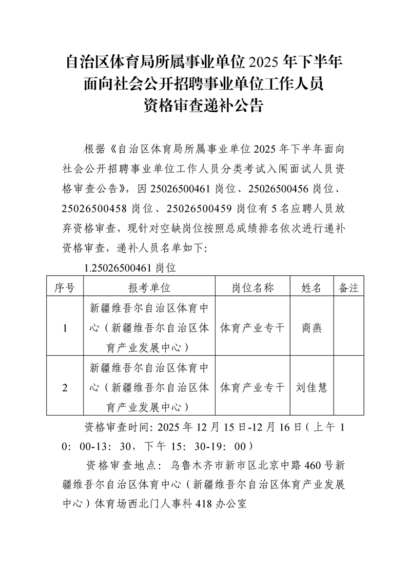 自治区体育局所属事业单位2025年下半年面向社会公开招聘事业单位工作人员资格审查递补公告