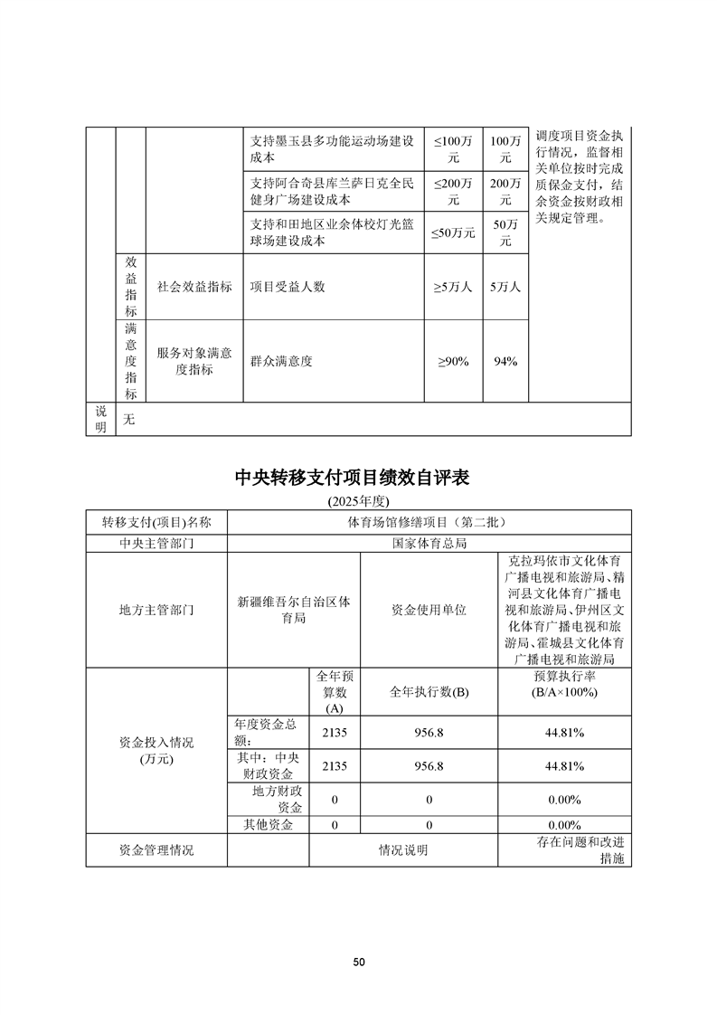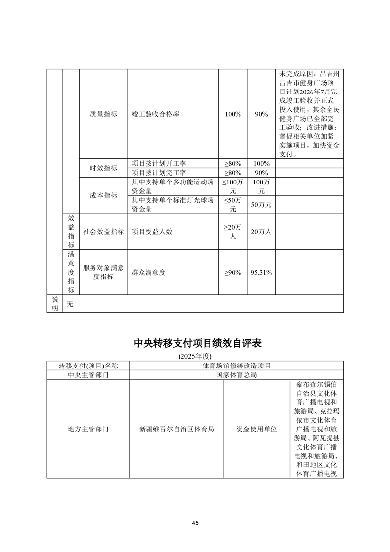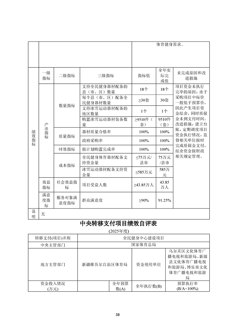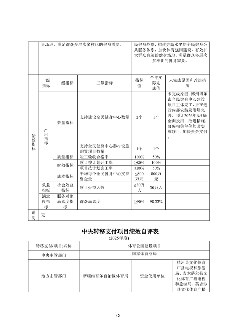 中央专项彩票公益金支持地方社会公益事业发展(体育健身)资金转移支付2025年度绩效自评报告