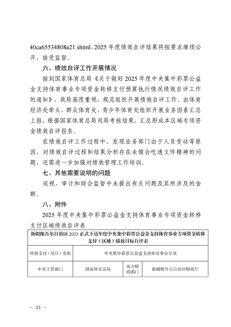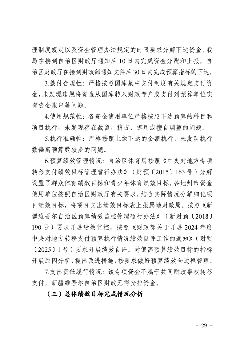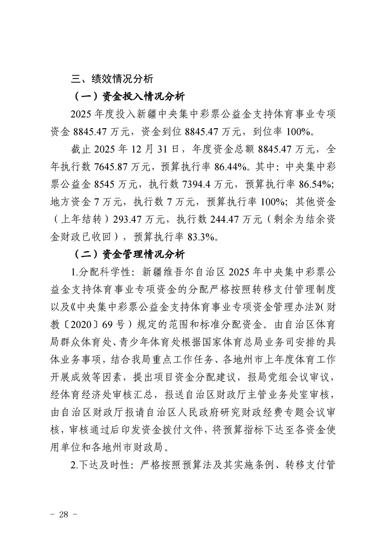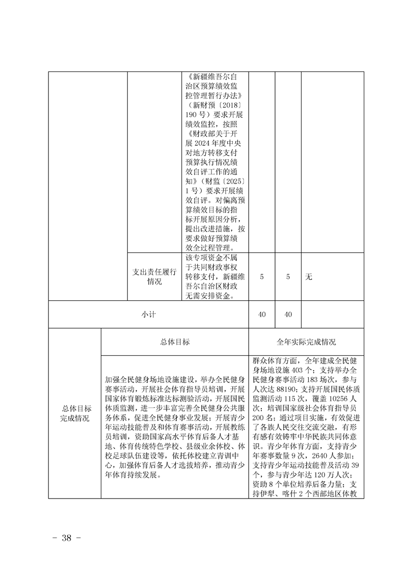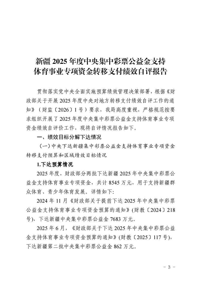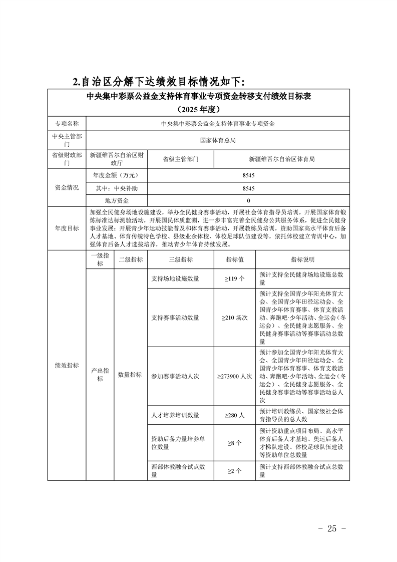新疆 2025 年度中央集中彩票公益金支持体育事业专项资金转移支付绩效自评报告