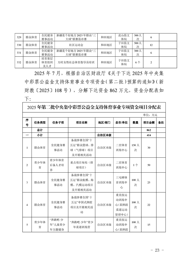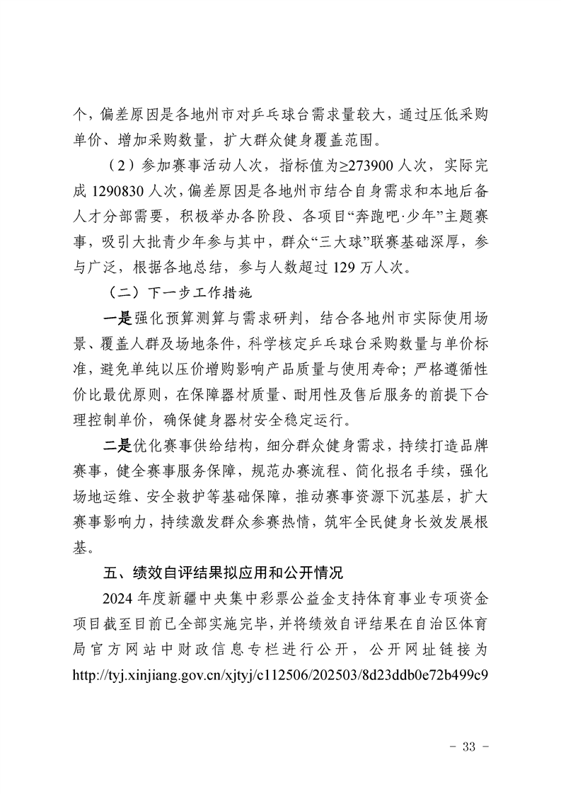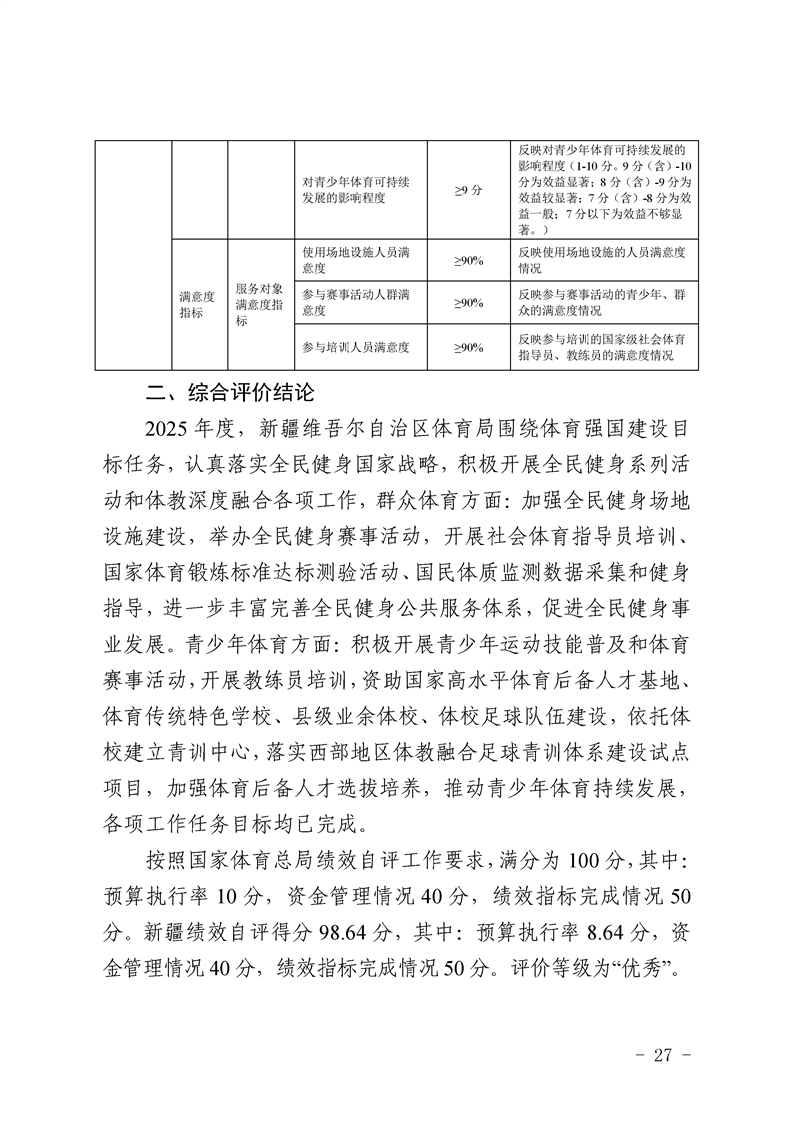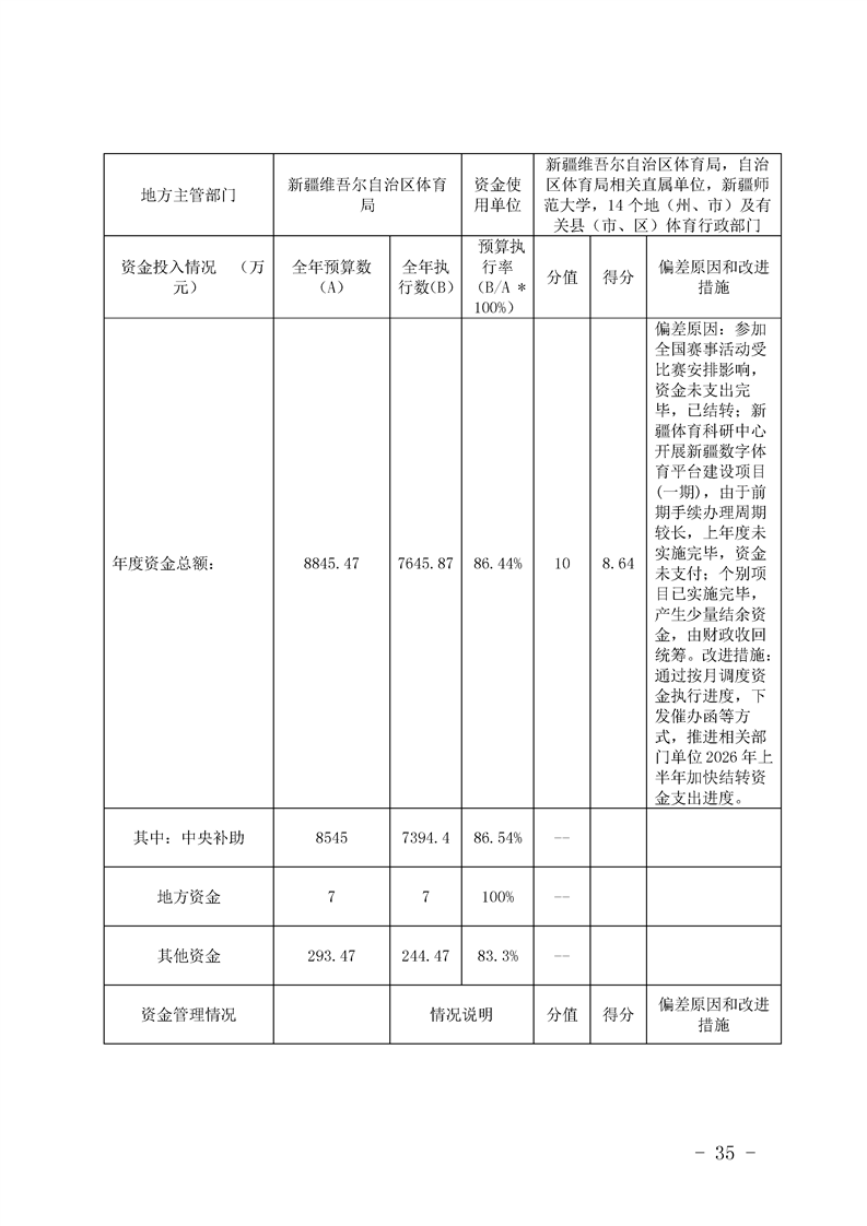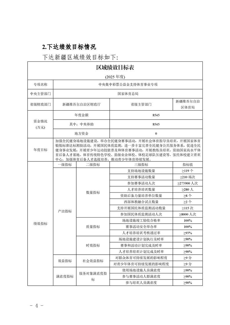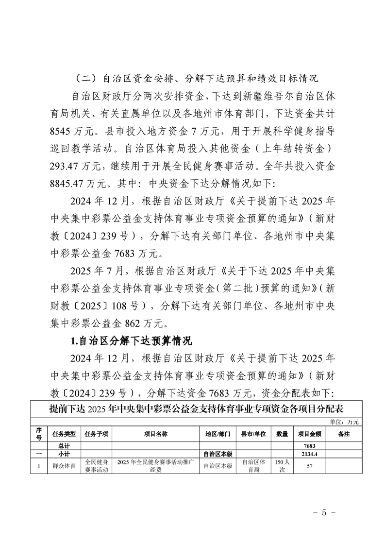 新疆 2025 年度中央集中彩票公益金支持体育事业专项资金转移支付绩效自评报告