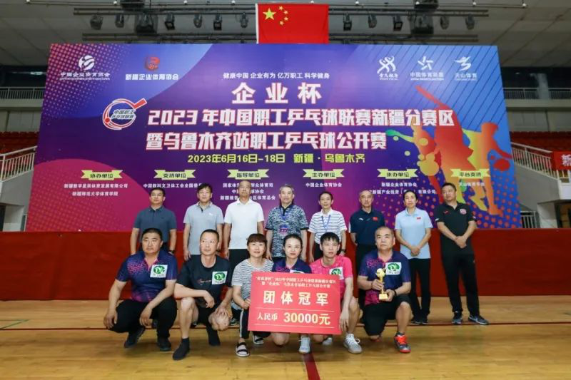 6月18日,2023年中国职工乒乓球联赛新疆分赛区暨“企业杯”乌鲁木齐站职工乒乓球公开赛在乌鲁木齐闭幕,中国乒乓球名帅陆元盛和奥运冠军陈龙灿、乔红为获奖选手颁奖。
