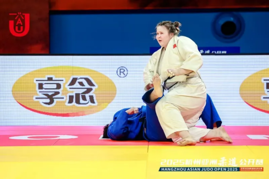 9月7日,在杭州结束的2025杭州亚洲柔道公开赛中,中国柔道队阿依曼·金俄斯努尔(白方)夺得女子78公斤以上级金牌。受访者提供