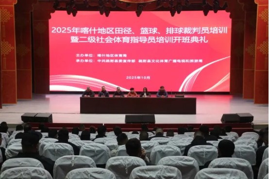1027日,喀什地区田径、篮球、排球裁判员培训暨二级社会体育指导员培训班在疏附县影剧院开班,旨在为喀什地区培养专业体育人才,助力基层体育事业规范化发展。