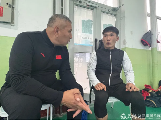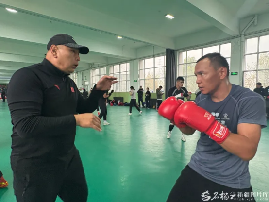 在第十五届全国运动会备战的冲刺阶段,看着队员们因高强度训练神经紧绷的样子,阿不都西库尔带领教练组特意策划了一场特殊的放松活动——带大家前往新疆体育职业技术学院,与这里的青少年拳手们开展互动训练。