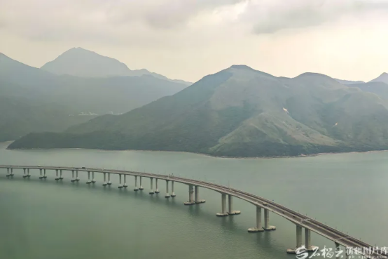 11月2日,记者在乌鲁木齐飞往香港的CZ603航班上拍摄的港珠澳大桥。