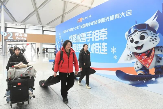 在接站服务方面,组委会精心策划了特色迎宾环节,两支六人演员小分队分别驻守乌鲁木齐天山国际机场与乌鲁木齐站,以欢快的歌舞夹道欢迎,用热情舞姿与真挚笑容开启青少年们的冰雪之旅。